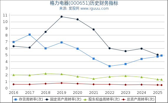 - 总资产周转率是指销售收入净额与总资产平均净值的比率。 格力电器(000651)(以下简称“本公司”)当前总资产周转率0.49低于历史平均水平0.81,说明本公司整体资产的营运能力正在下降; 当前总资产周转率0.49低于行业平均水平0.61,说明本公司整体资产的营运能力处于行业下游。