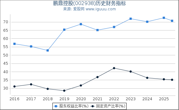 - 资产负债比率是指流动负债和长期负债与总资产的比率。 鹏鼎控股(002938)(以下简称“本公司”)当前资产负债比率0.29低于历史平均水平0.43,说明本公司经营风险正在下降; 当前资产负债比率0.29低于行业平均水平0.52,说明本公司经营风险处于行业下游。