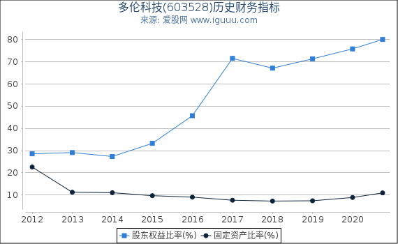 - 固定资产周转率是指销售收入净额与固定资产平均净值的比率。 多伦科技(603528)(以下简称“本公司”)当前固定资产周转率2.72低于历史平均水平4.20,说明本公司固定资产利用效率正在下降; 当前固定资产周转率2.72低于行业平均水平2.93,说明本公司固定资产利用效率处于行业下游。
