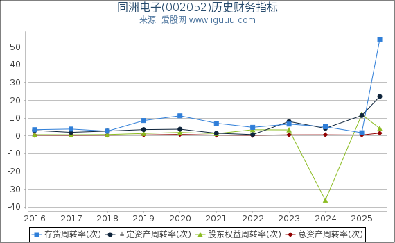- 固定资产周转率是指销售收入净额与固定资产平均净值的比率。 同洲电子(002052)(以下简称“本公司”)当前固定资产周转率22.14高于历史平均水平4.55,说明本公司固定资产利用效率正在上升; 当前固定资产周转率22.14高于行业平均水平2.93,说明本公司固定资产利用效率处于行业上游。