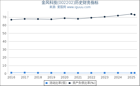 - 流动比率是指流动资产与流动负债的比率。 金风科技(002202)(以下简称“本公司”)当前流动比率1.02低于历史平均水平1.45,说明本公司短期偿债能力正在下降; 当前流动比率1.02低于行业平均水平1.22,说明本公司短期偿债能力处于行业下游。