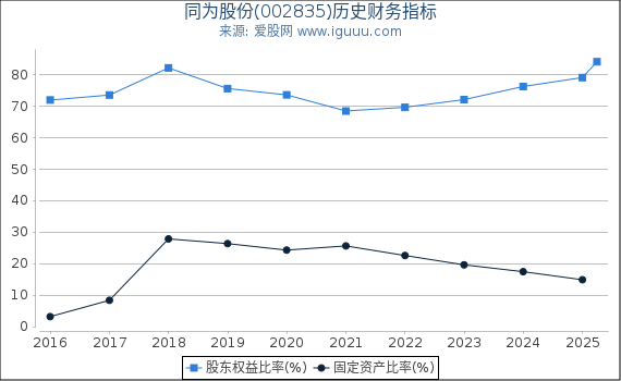 - 净资产收益率是指净利润额与净资产的比值。 同为股份(002835)(以下简称“本公司”)当前净资产收益率0.17高于历史平均水平0.14,说明本公司运用资产的能力正在上升; 当前净资产收益率0.17高于行业平均水平0.09,说明本公司运用资产的能力处于行业上游。