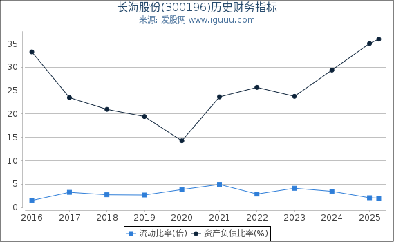 - 流动比率是指流动资产与流动负债的比率。 长海股份(300196)(以下简称“本公司”)当前流动比率2.00低于历史平均水平2.24,说明本公司短期偿债能力正在下降; 当前流动比率2.00高于行业平均水平1.26,说明本公司短期偿债能力处于行业上游。