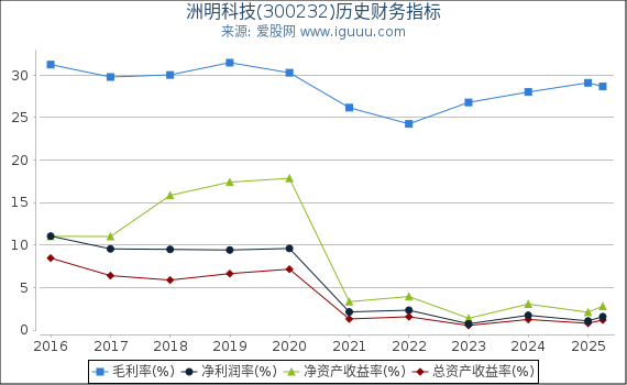 - 净资产收益率是指净利润额与净资产的比值。 洲明科技(300232)(以下简称“本公司”)当前净资产收益率0.03低于历史平均水平0.13,说明本公司运用资产的能力正在下降; 当前净资产收益率0.03低于行业平均水平0.09,说明本公司运用资产的能力处于行业下游。
