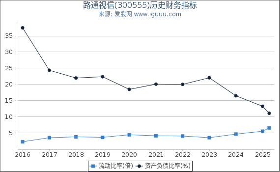 - 流动比率是指流动资产与流动负债的比率。 路通视信(300555)(以下简称“本公司”)当前流动比率6.61高于历史平均水平3.00,说明本公司短期偿债能力正在上升; 当前流动比率6.61高于行业平均水平1.47,说明本公司短期偿债能力处于行业上游。