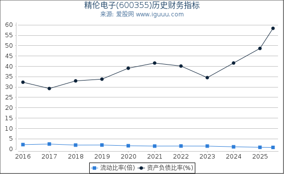 - 流动比率是指流动资产与流动负债的比率。 精伦电子(600355)(以下简称“本公司”)当前流动比率0.83低于历史平均水平2.83,说明本公司短期偿债能力正在下降; 当前流动比率0.83低于行业平均水平1.47,说明本公司短期偿债能力处于行业下游。