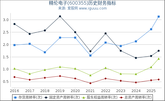 - 固定资产周转率是指销售收入净额与固定资产平均净值的比率。 精伦电子(600355)(以下简称“本公司”)当前固定资产周转率1.75低于历史平均水平2.33,说明本公司固定资产利用效率正在下降; 当前固定资产周转率1.75低于行业平均水平2.93,说明本公司固定资产利用效率处于行业下游。