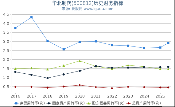 - 固定资产周转率是指销售收入净额与固定资产平均净值的比率。 华北制药(600812)(以下简称“本公司”)当前固定资产周转率1.60低于历史平均水平2.19,说明本公司固定资产利用效率正在下降; 当前固定资产周转率1.60低于行业平均水平2.42,说明本公司固定资产利用效率处于行业下游。